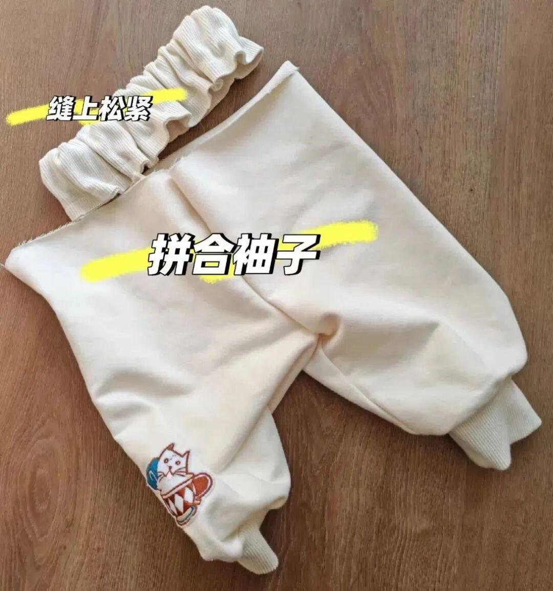 兩條袖子縫合起來,再給腰頭縫合上鬆緊,就輕鬆搞定。