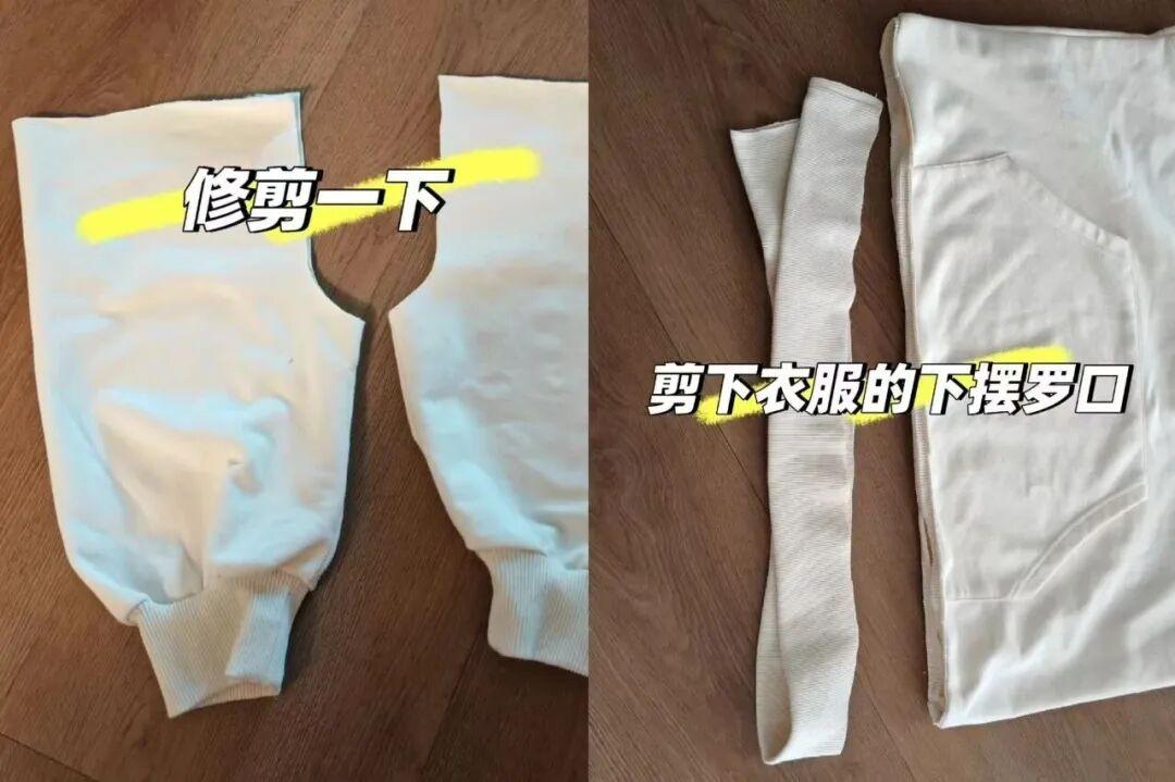 利用2-3件不穿的衛衣,按照自己喜歡的造型裁剪,然後拼接的一起,一個穿膩的衛衣,就煥然一新。