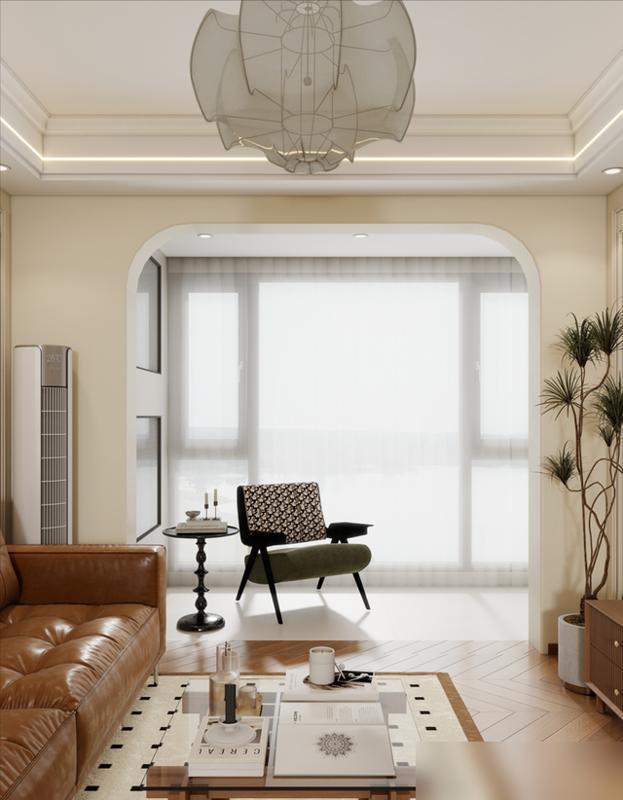 沙發背景牆更剋制,石膏線勾個框,掛幅畫就完事,窗簾只配層薄紗,風吹進來輕飄飄的,比那些厚重幔子清爽十倍。