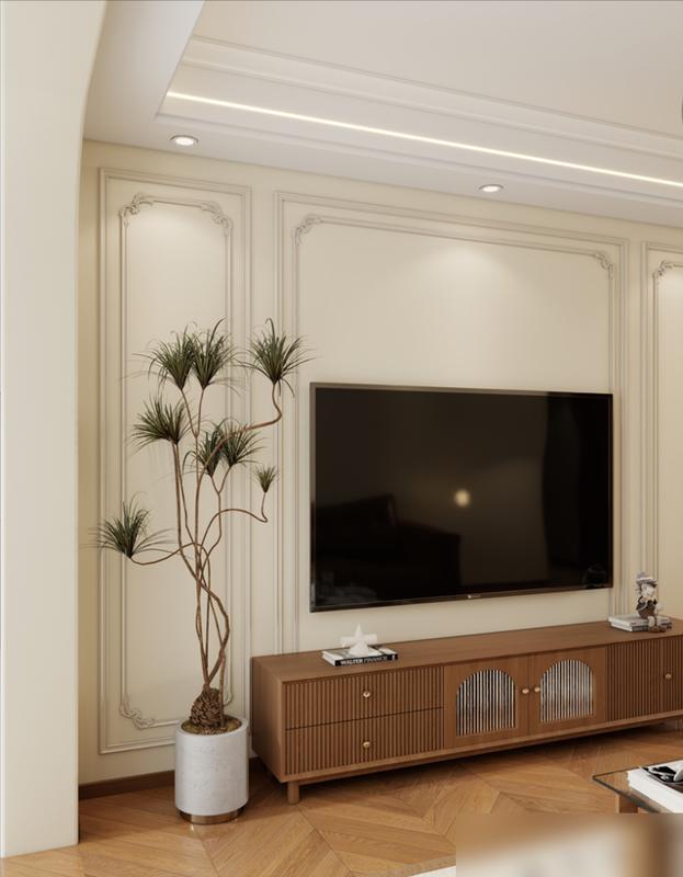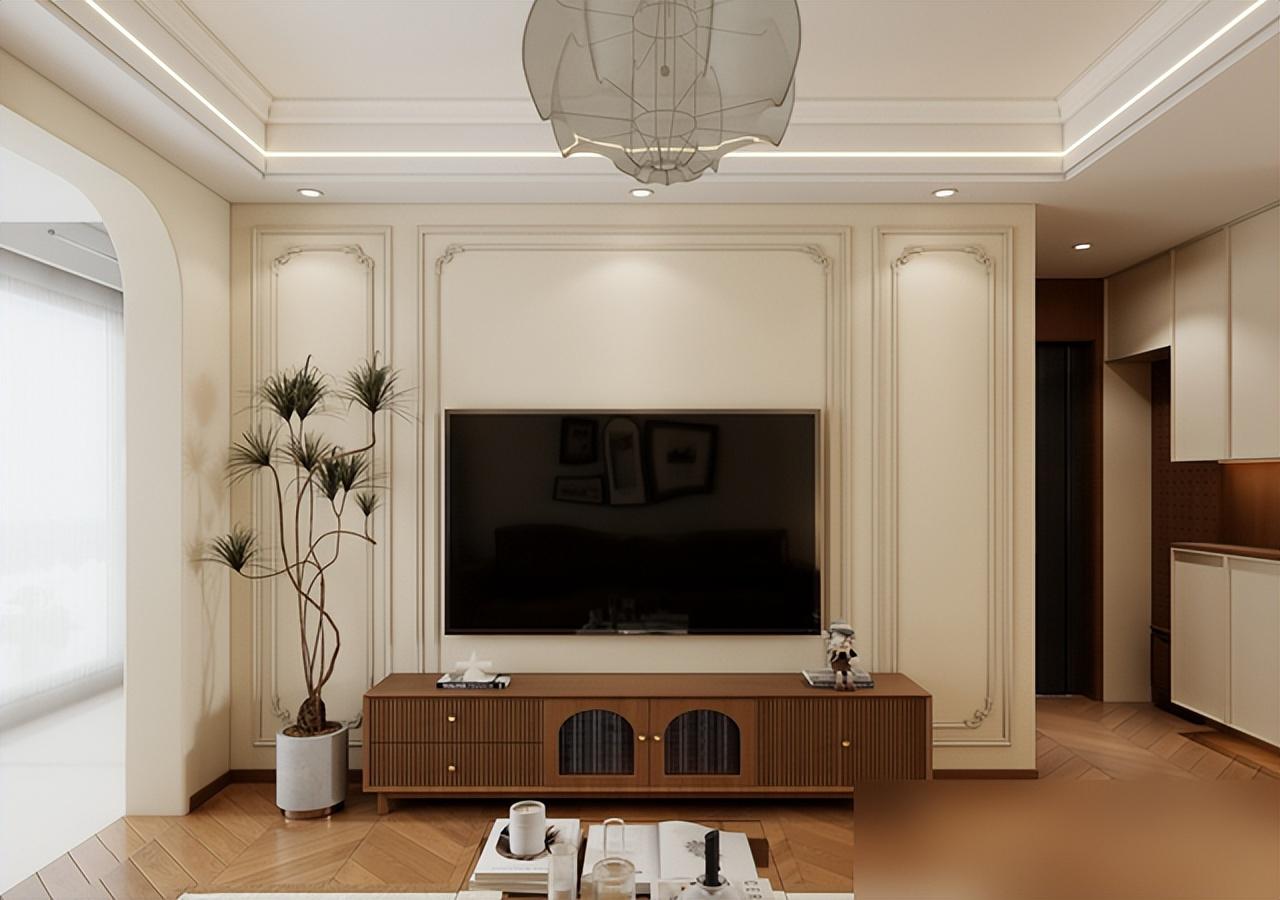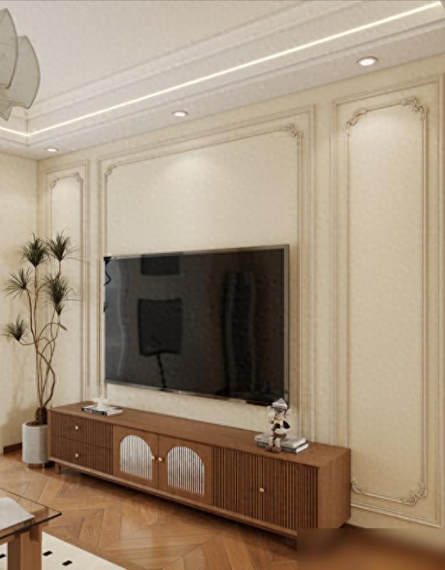 成品櫃配石膏線的電視牆更是反套路操作,懸空櫃光打底架就得加錢,現在直接落地擺放,石膏線走兩圈就有立體感,錢省下來買個好沙發更實在。