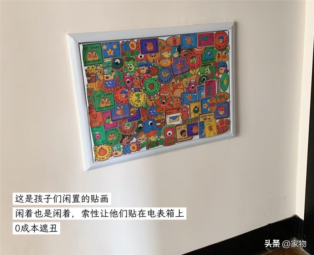 你沒聽錯,家裏孩子們不喜歡的貼畫,和各種贈品貼畫,我都直接貼在了家裏的電錶箱門上,比起額外再買個電錶箱遮擋畫,掛在這奇怪的高度上,其實這樣反而更自然,更加不顯突兀,0成本實現遮醜。