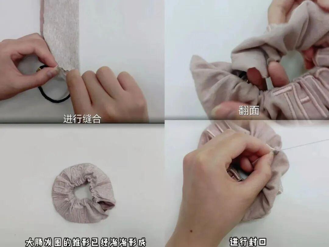 關鍵是要在縫合時故意製造蓬鬆褶皺,通過調節抽褶密度來控制髮圈的飽滿度。