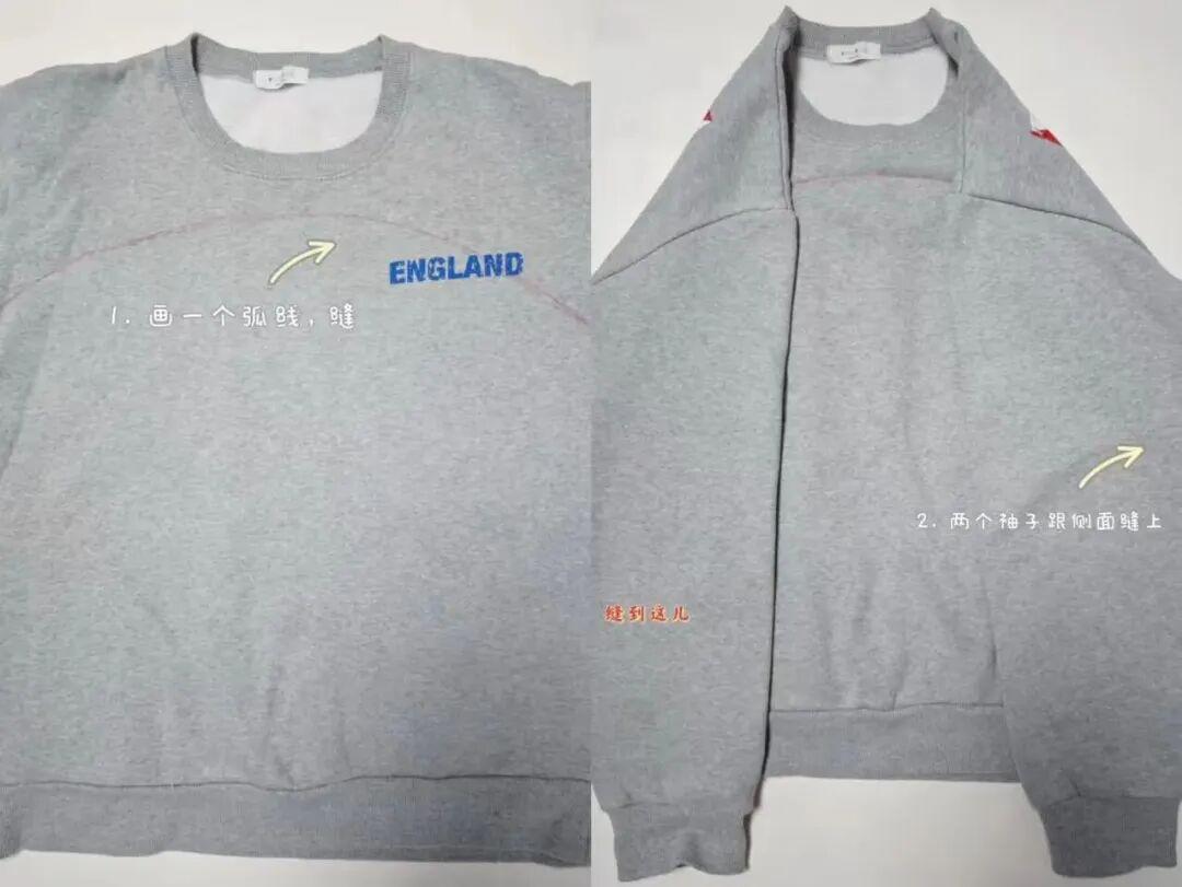 利用2-3件不穿的衛衣,按照自己喜歡的造型裁剪,然後拼接的一起,一個穿膩的衛衣,就煥然一新。