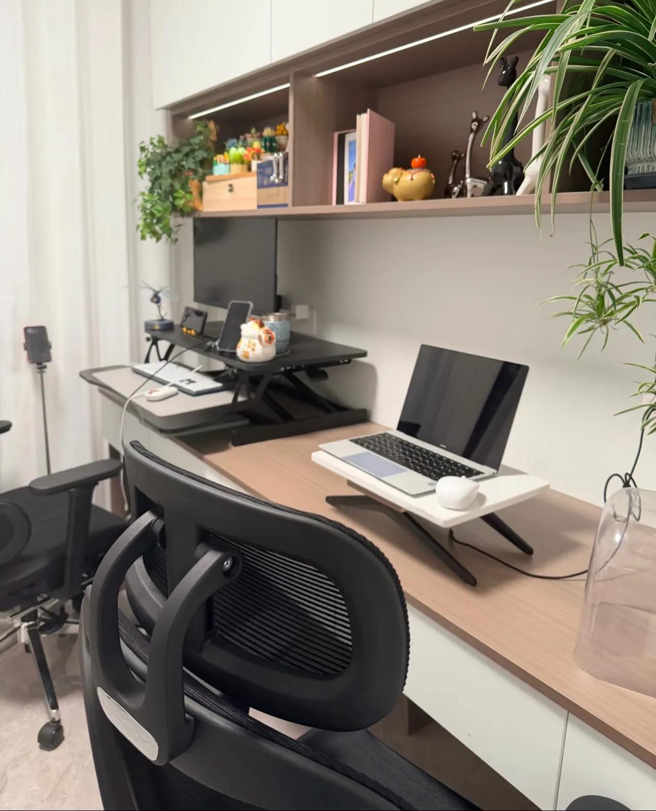 立刻有了主意:支架+檯面就能當成電腦支架,這不就利用上了嘛,還不用多花錢買個成品支架。