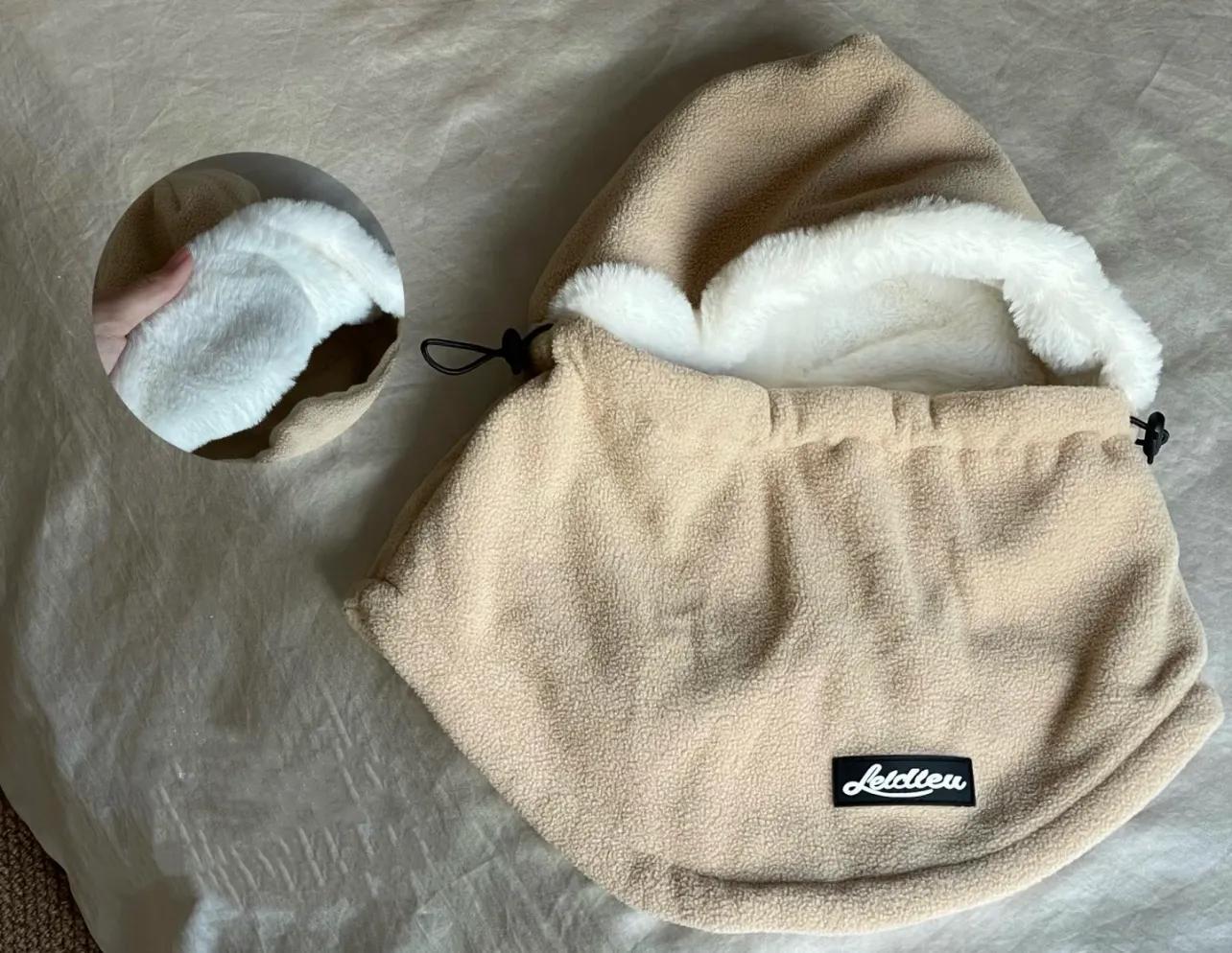 頭套是面罩和帽子一體式的,脖子、耳朵都一起暖和了。