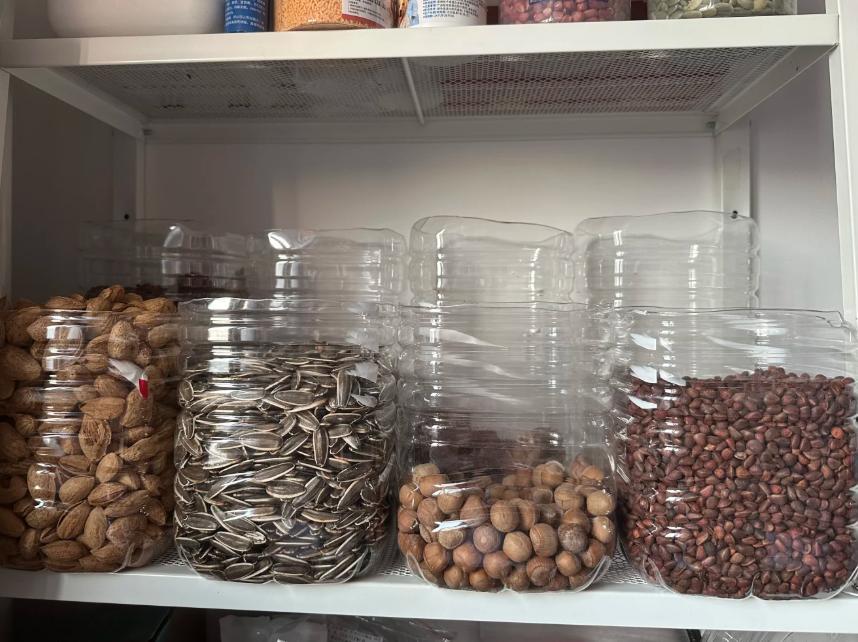 家裏的瓜子、碧根果、松子等等,這些乾果要想收納,也挺費腦筋的!學學網友的做法,直接搞幾個礦泉水桶,這不就方便多了!