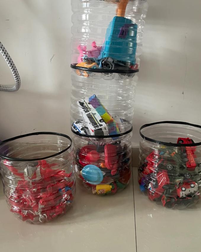 喝剩下的礦泉水桶,把上部分剪去一點,一個超強的收納神器就搞定了!