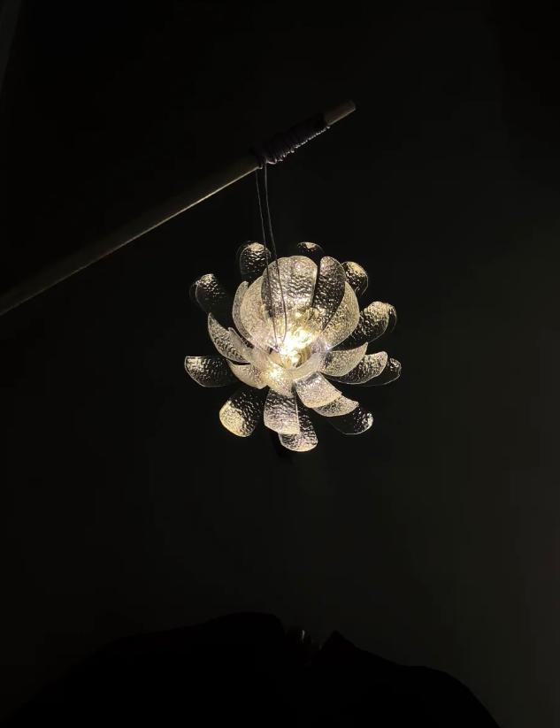 2.用熱熔槍把花瓣粘貼在一起,並把燈帶塞到花瓣的中心處(瓶蓋的位置);