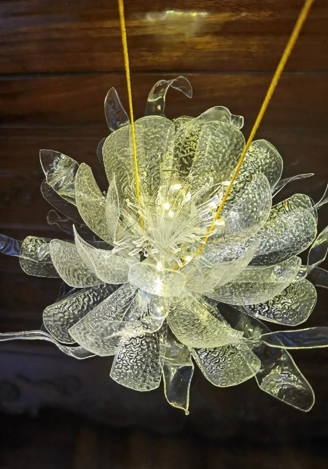快來一起做吧,美汁源瓶子自帶花瓣形狀,很漂亮的波紋瓶子,在燈的照耀下很漂亮……
