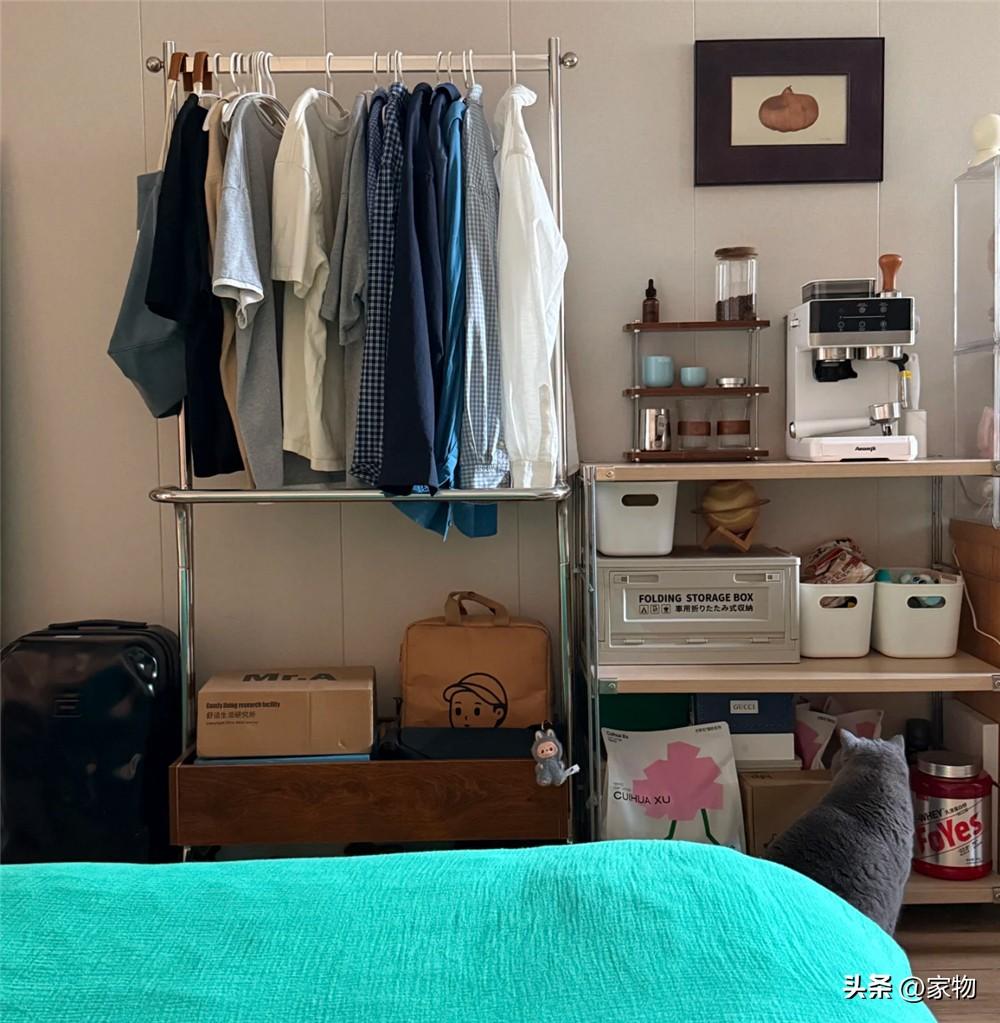 挨着玄關位置的是個掛衣架,相當於家裏的次淨衣區,方便回家後隨手掛外套,或收納一些零散雜物,雖說都是明面上的收納,但看起來卻是亂中有序。