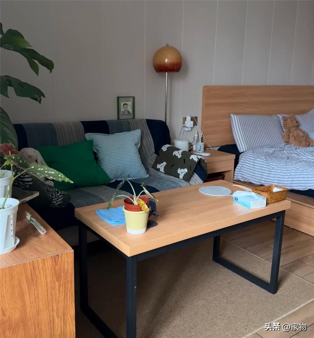 家裏的客廳緊挨着客廳,說是客廳,其實就是一張雙人位沙發搭配簡易小茶几組成的臨時休息區,她會在下班後窩在這裏看看書、玩會兒手機,享受獨處的寧靜時光。