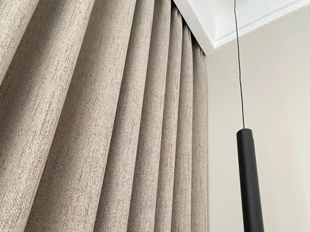 定製窗簾的時候,建議做滿牆落地式。在視覺上能夠拉高層高,顯得也大氣。而掛鉤處儘量做高溫定型,掛上後褶皺會變得非常整齊挺拔,就像剛熨燙過的一樣。