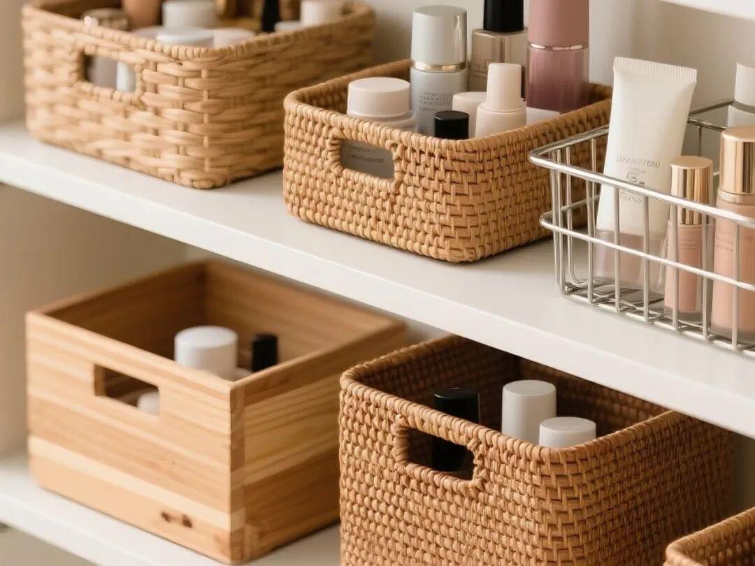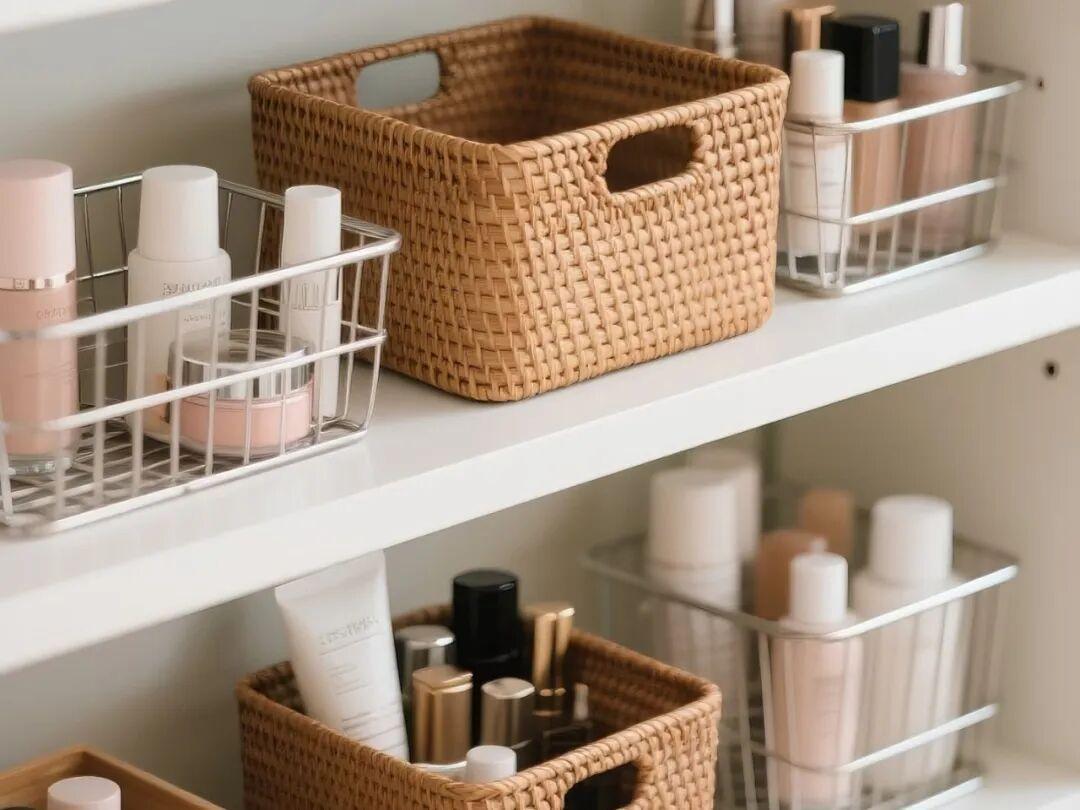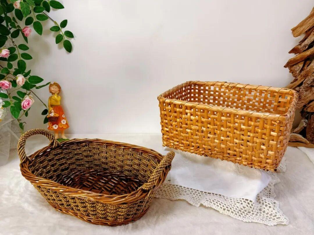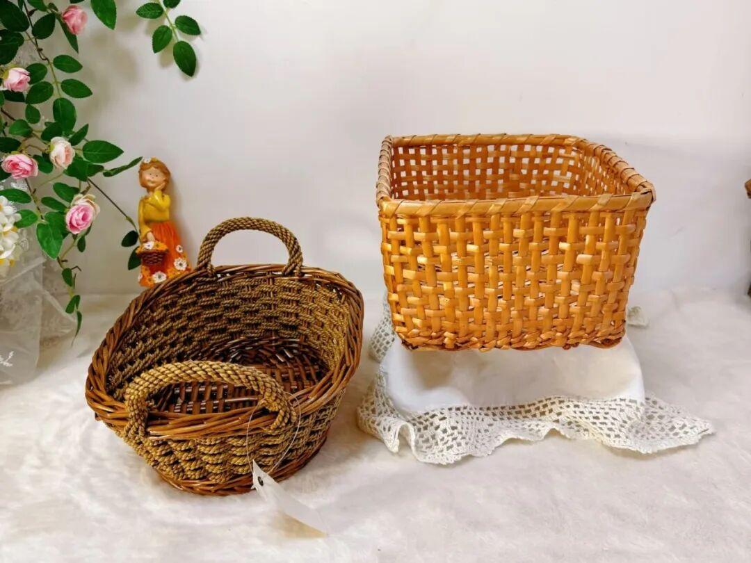 而閨蜜家是買了大大小小的一套藤編的收納籃,把這些藤編收納籃放在了客廳、臥室,甚至衛生間。