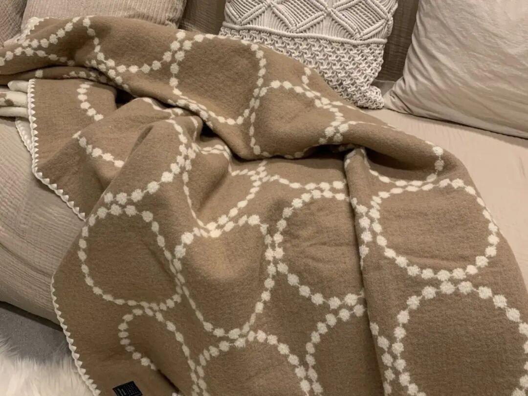 待在她家的客廳,我就發現這條毯子簡直是氛圍感神器了。稍微感覺冷,可以拉過來披蓋。平時,隨意搭在沙發扶手或靠背上。柔軟的觸感,立刻爲空間注入溫馨和舒適感。我發現溫暖又舒適,都有點犯困了。
