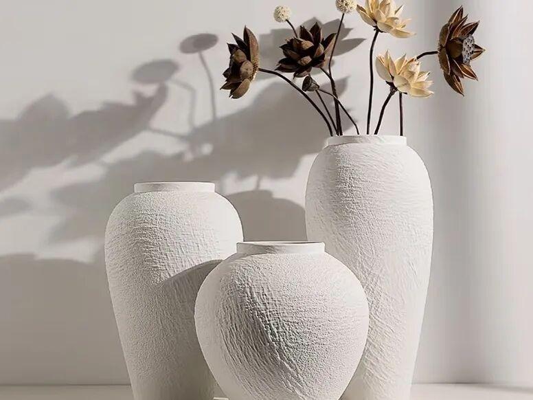 軟裝不必追求過大或者是複雜的器型。顏色選擇莫蘭迪色系,例如灰綠,裸粉、燕麥色的中小型花瓶,會更百搭,即使不插花,單獨擺放也是優美的裝飾品。