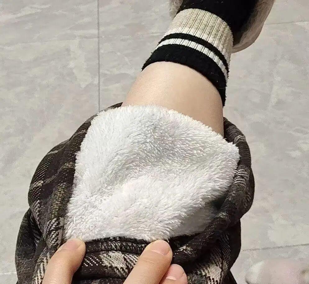 ▲加絨格子闊腿褲