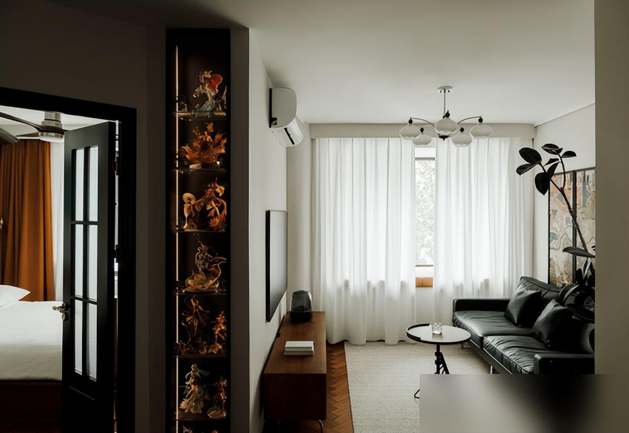 斜牆設計藏手辦展示區,空調管包弧線過渡,這些小改動花不了幾個錢,卻讓空間利用率飆升。