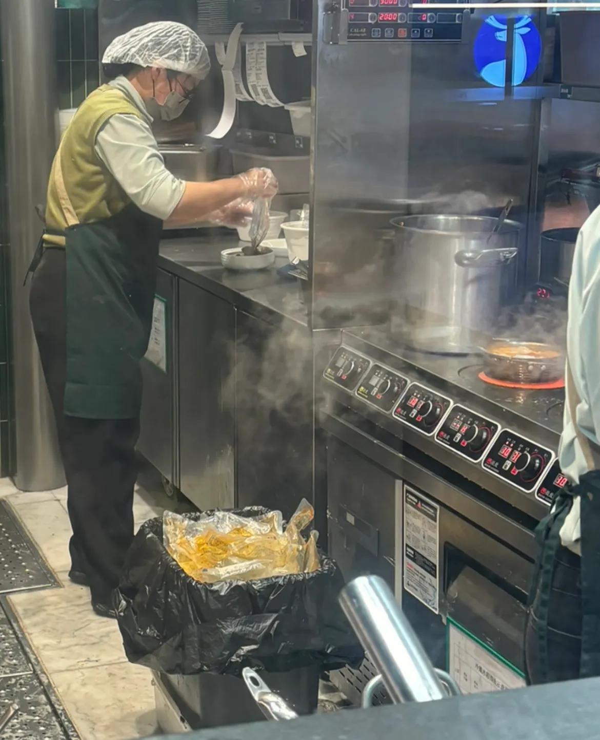 在外面喫飯,尤其是一些品牌連鎖餐飲,你從玻璃後廚往進看就知道,廚師都不是印象中的樣子,而是一些年輕小哥哥,不需要有烹飪手藝,一袋冷凍料理包,回個鍋或者微波爐叮三分鐘就出餐。