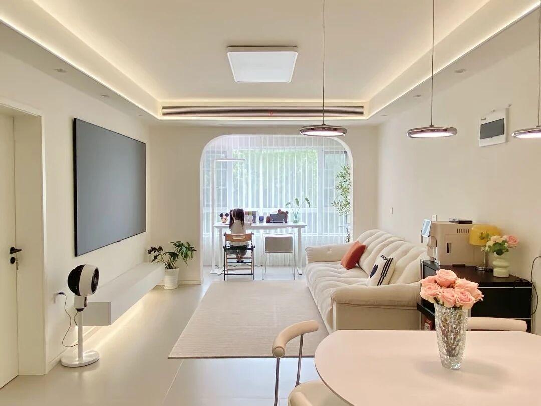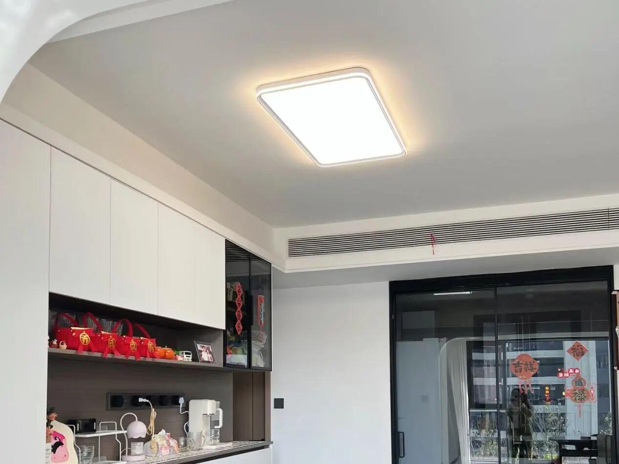 這次裝修,就改變了這種做法。燈改成了極簡的吸頂燈,放棄了無主燈。就買那些樣式好看的,光線好的就行了。