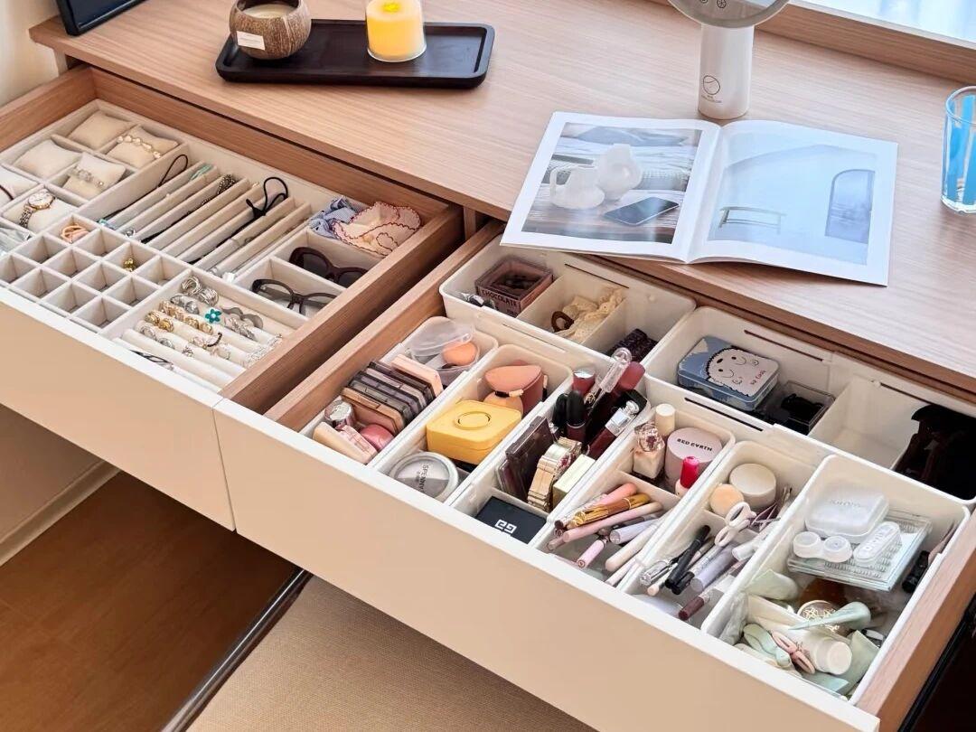 別看做法簡單了,反而給我的體驗更好了。冬天,坐在上面就沒有那麼冷了。而且,下面裝了抽屜改成了化妝區,一舉兩得。