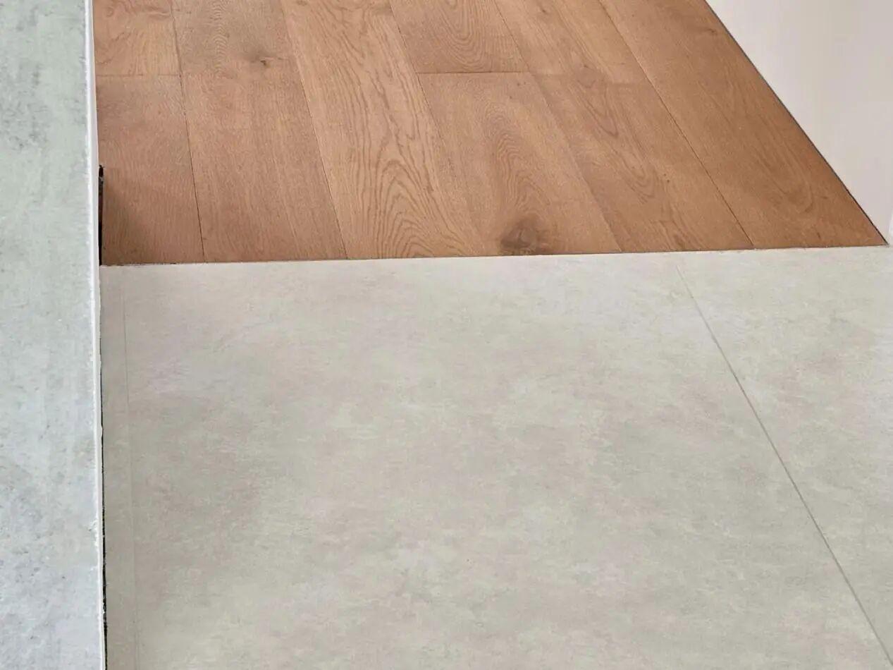 這次裝修,就改變了這種做法,取消了過門石。瓷磚通鋪的區域,就是使用瓷磚直接通鋪過去;臥室木地板和以外的地方,是採取的對鋪,將瓷磚切個槽,木地板頂進去,也沒有安裝過門條。