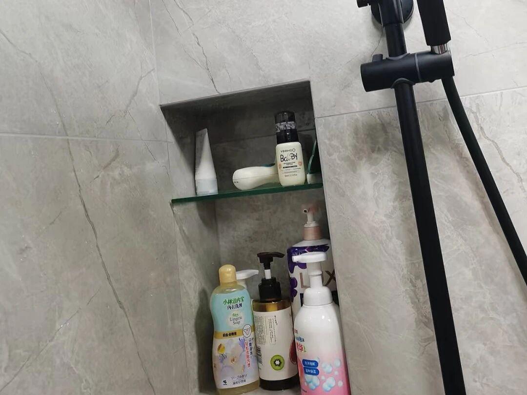 可是,真正體驗以後發現,壁龕真是中看不中用。不僅裏面放不了幾瓶洗髮水就滿了,關鍵的是裏面的縫隙很容易發黴。因爲水進去就出不來,導致要經常擦。