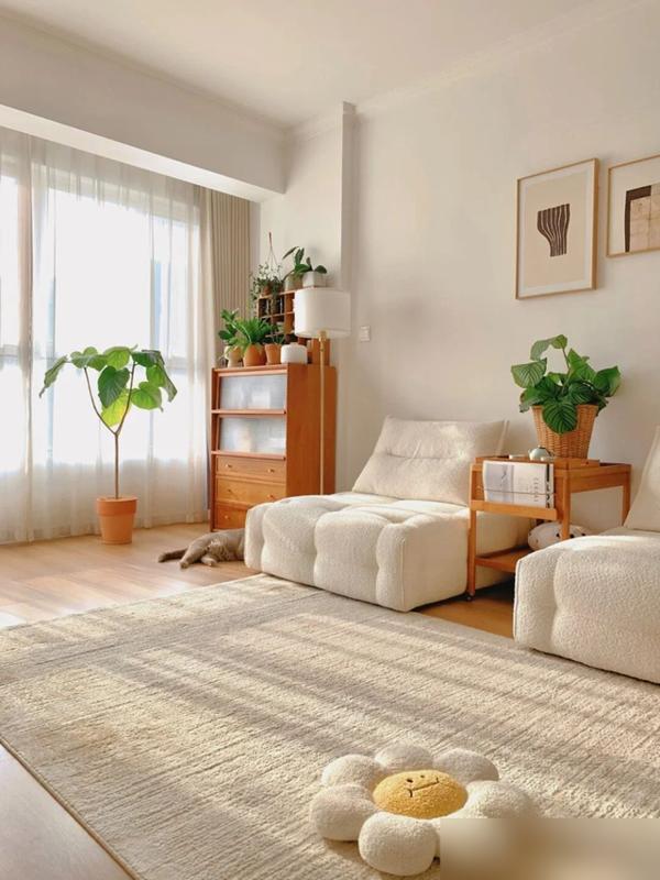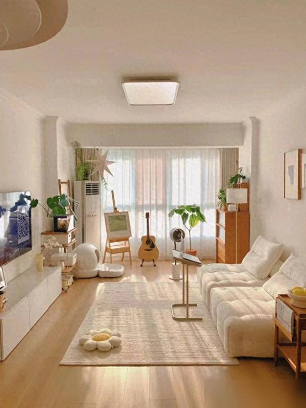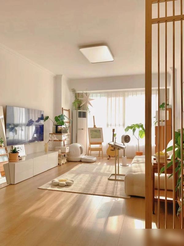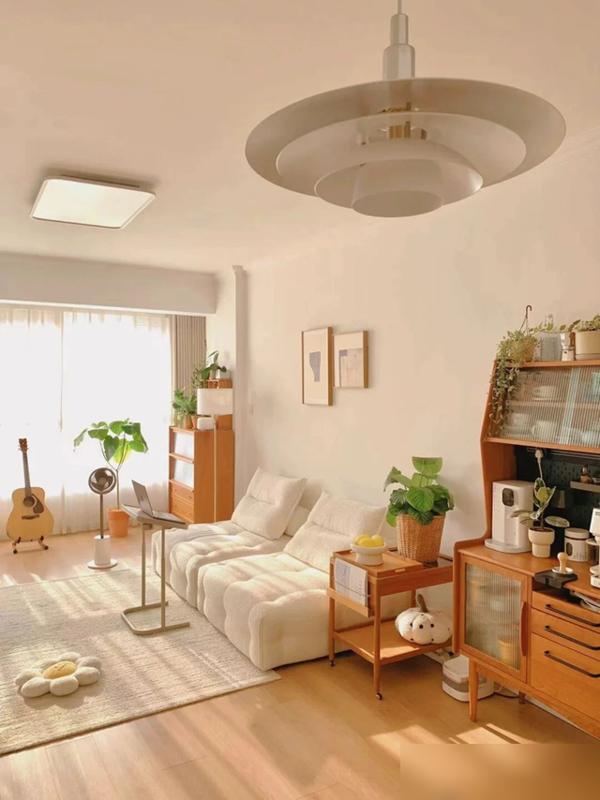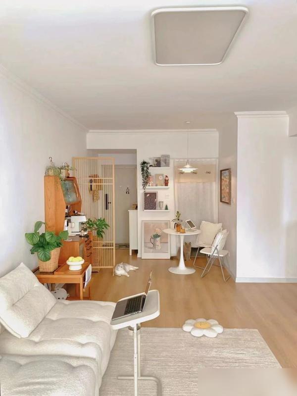 軟裝纔是靈魂——米白沙發配藤編茶几,再加點綠植點綴,幾十塊的小物件能讓空間活起來。