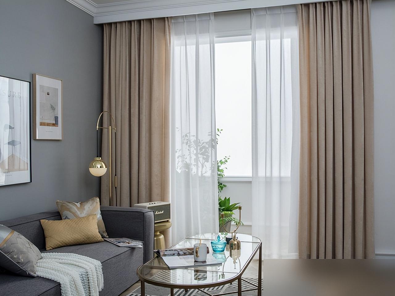 客廳我選淺色混紡紗簾,透光不透人,亮堂又不曬,搭配遮光布雙層設計,實用又體面,朋友來串門都誇高級。