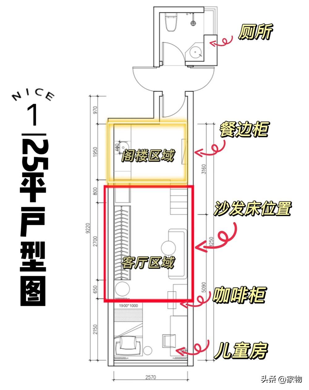 沒錯,家裏的戶型又窄又長,連帶着入門玄關到盡頭的兒童房,面積算下來總共有25㎡。