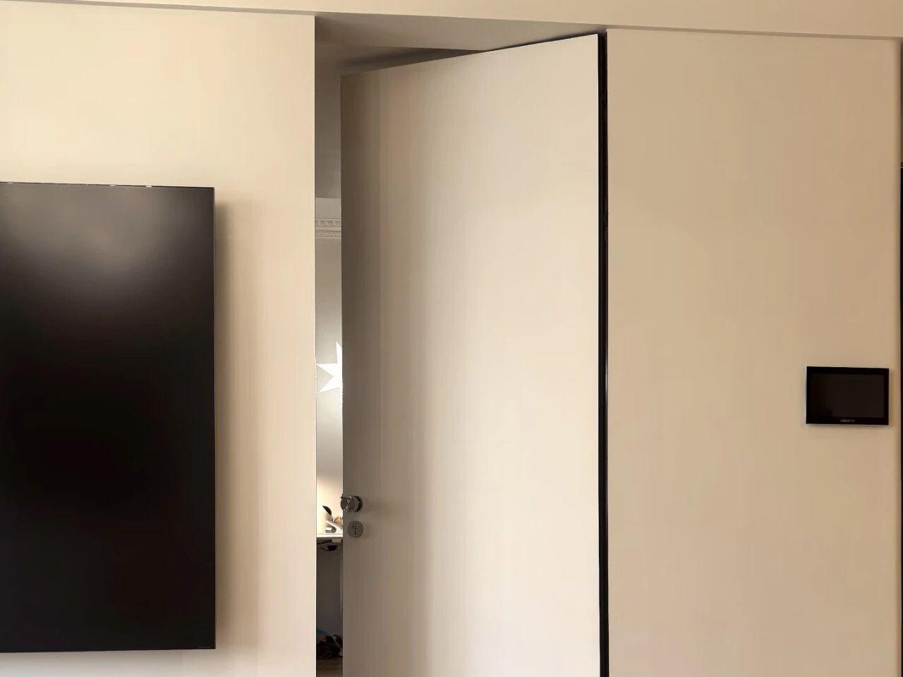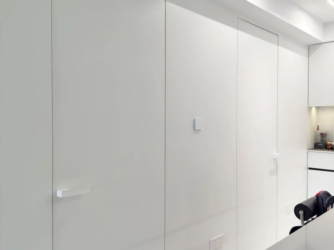 其實我也被極簡門種草了,很多地方做了極簡門。做了一牆面漆刷同樣乳膠漆的無框門,還有隱形門。