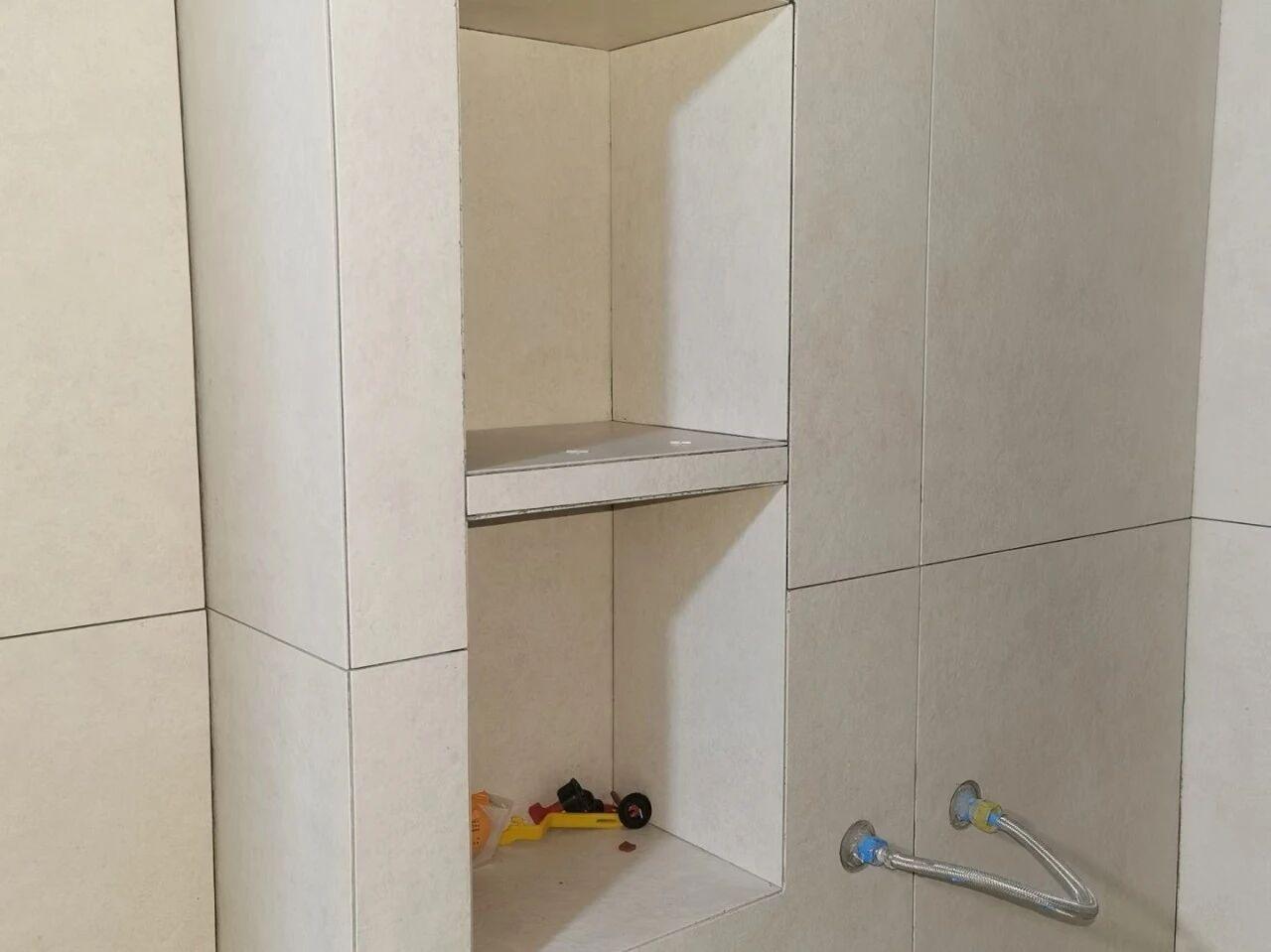 其實很多人原本是想利用包管的空間做個壁龕,用來放洗漱用品。但是,師傅手藝不行,裏面沒有坡度,一直積水。更讓人崩潰的是瓷磚切割的參差不齊,縫隙不齊,美縫以後跟狗啃的一樣,越看越難看。