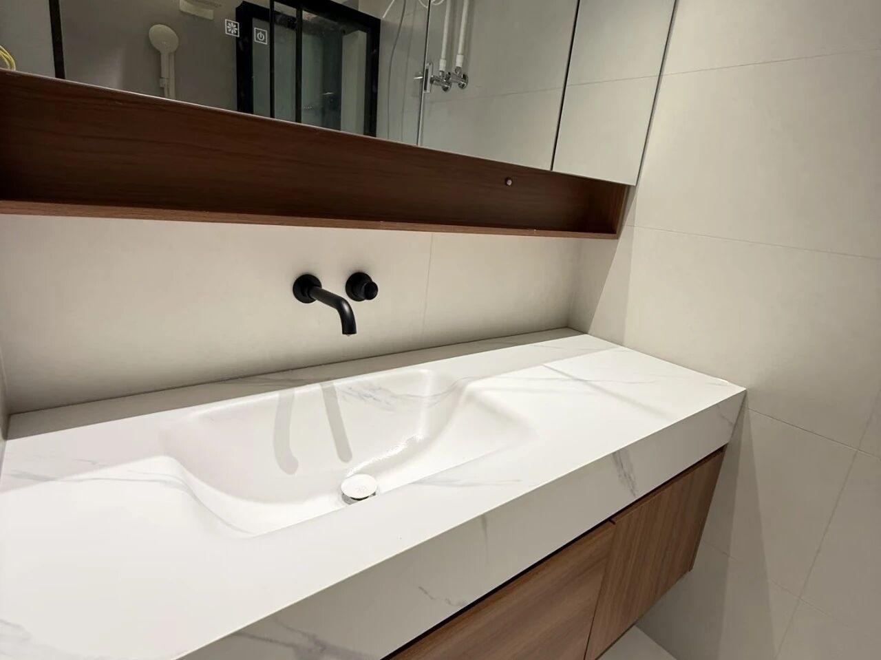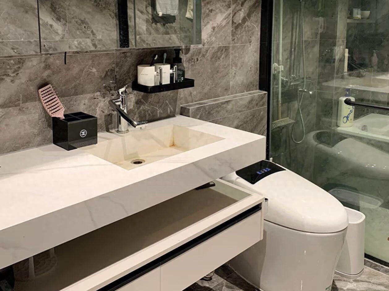 如果必須選巖板一體盆,建議選擇大品牌口碑好,確認是真正一體成型或弧形拼接的盆體,並且有合理的坡度。