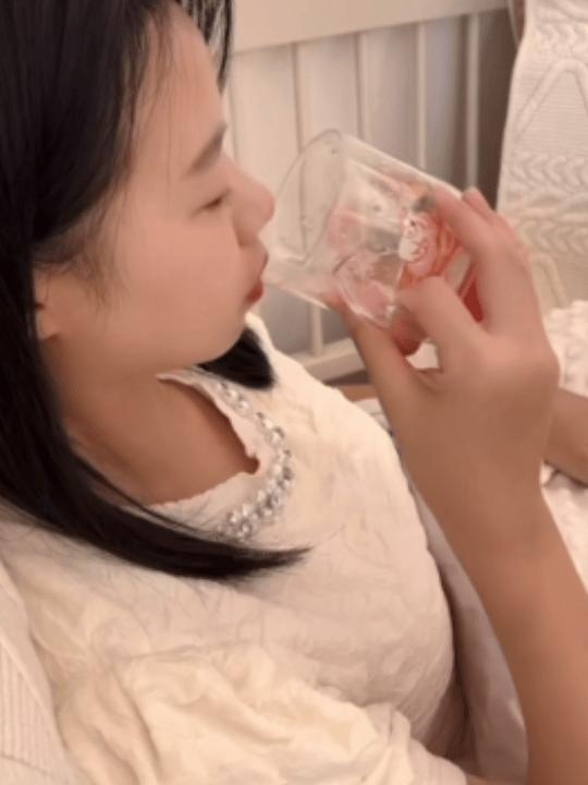 重點來了,躺屍的時候,不想起身咱就不起!杯子倒置,小細流一樣的水,正好躺着喝不會被嗆到。