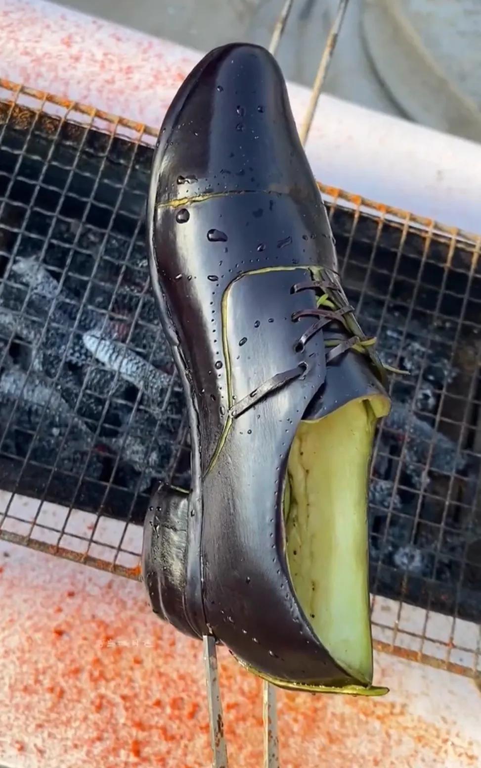 這個真的給住友@島城月色要磕一個了,太抽象,太有才了,不僅用茄子搞出了三接頭皮鞋的樣子,連講出來,都是諧音的。