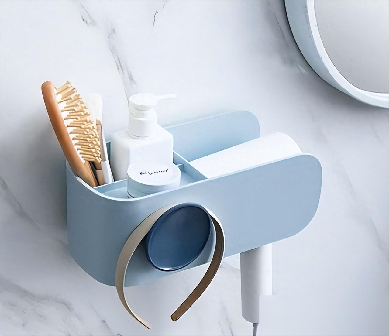 吹風機卡進牆面的置物架,電線不用纏成麻花;鏡櫃裏藏伸縮隔板,高矮瓶子各就各位;連馬桶水箱蓋都做成洗手池,廢水二次利用,省水還環保。