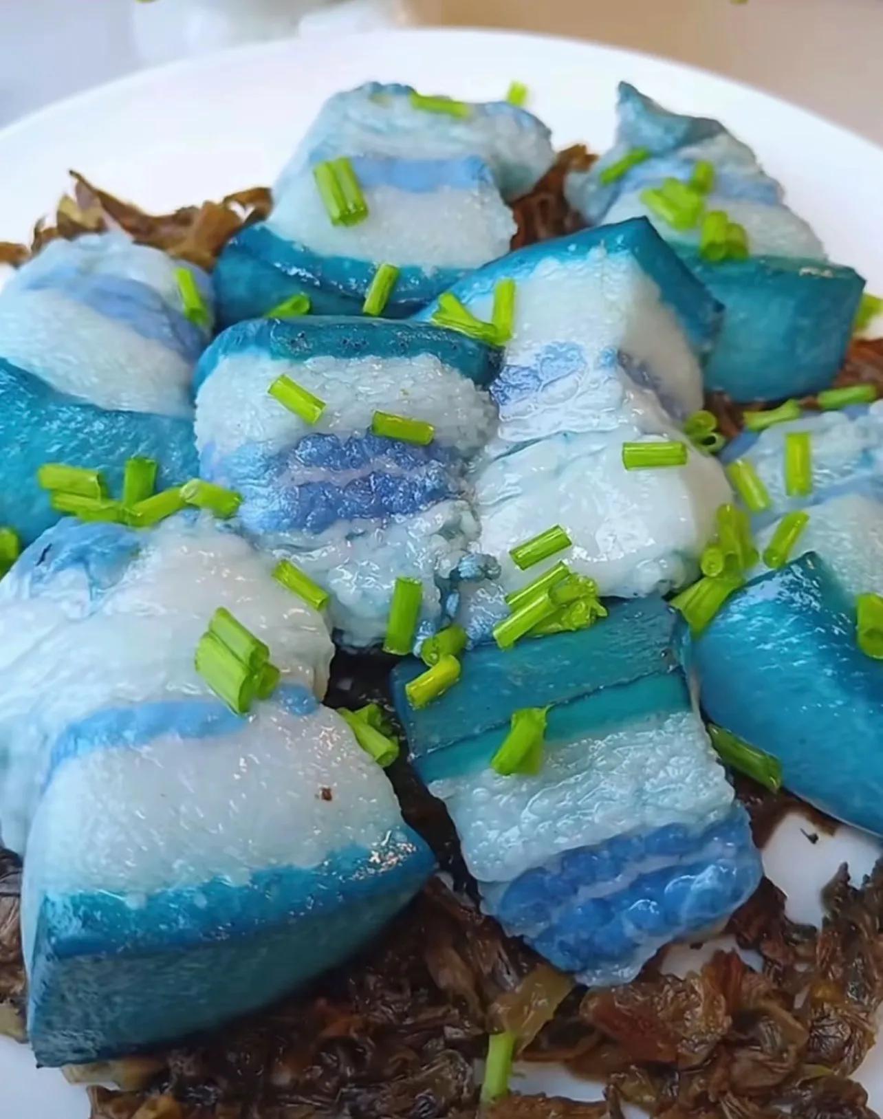 嫌藍色的食物,看着沒食慾,可以事先準備一盤白醋或者檸檬汁,蘸一下就能變成紅色,頗有童趣,一定能吸引小孩喫下去。