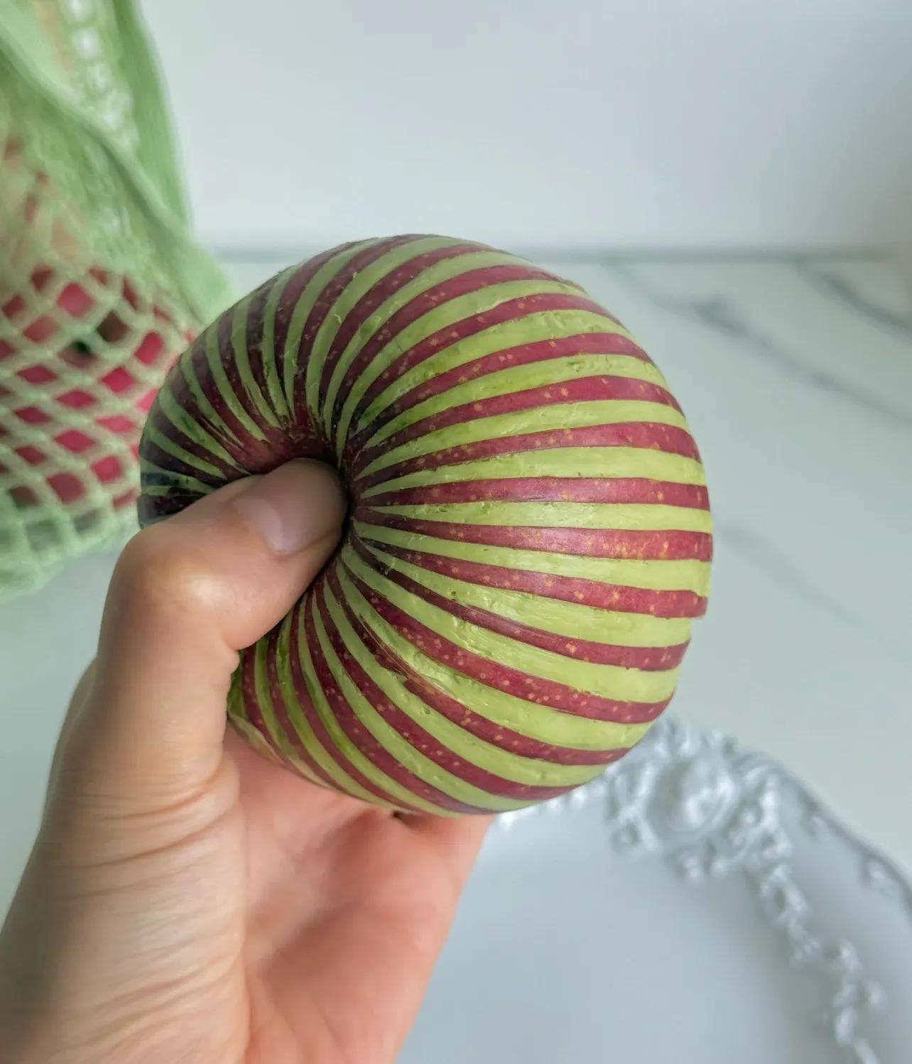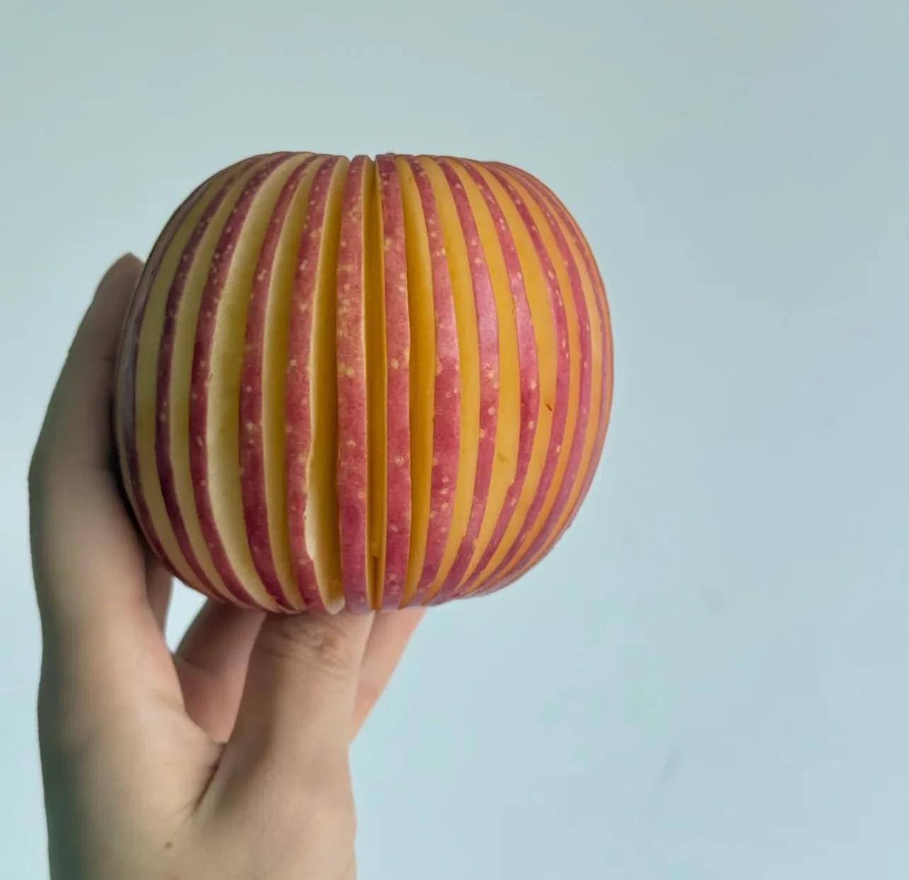 看完,一下就感覺我自己也可以!就是把蘋果削成了一片一片的。