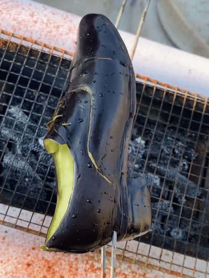 這個真的給住友@島城月色要磕一個了,太抽象,太有才了,不僅用茄子搞出了三接頭皮鞋的樣子,連講出來,都是諧音的。