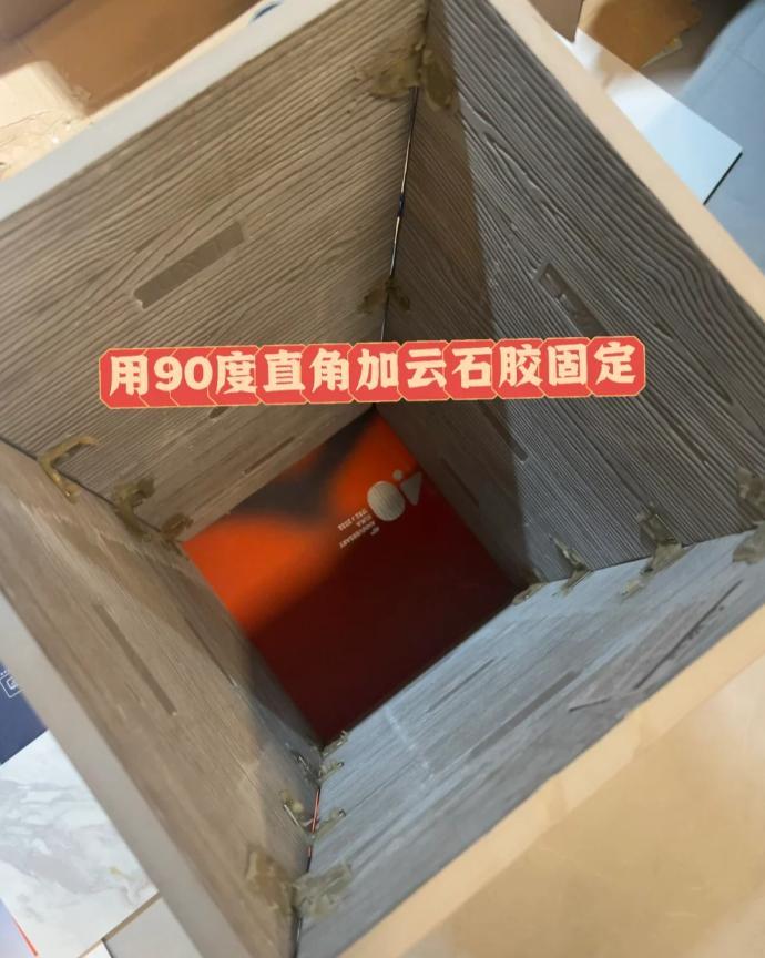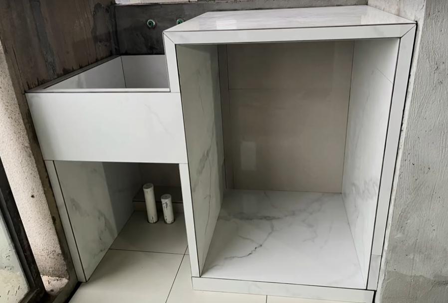 步驟其實也很簡單,直接把瓷磚拼成長方體立起來(先讓師傅給瓷磚“切45°斜角”),然後內部用90°直角和雲石膠固定住就可以了!