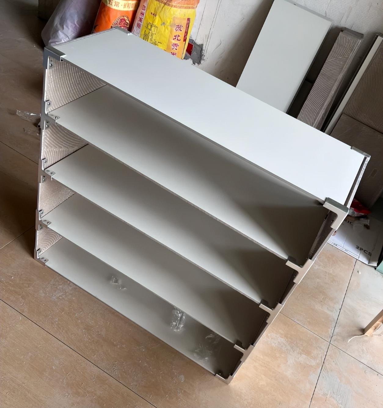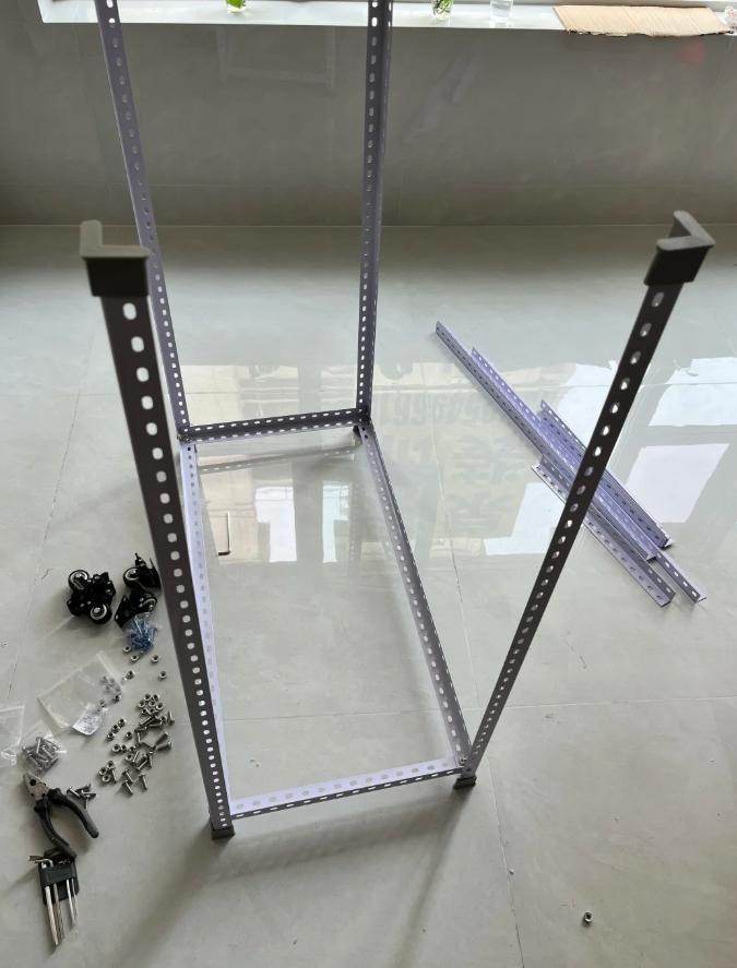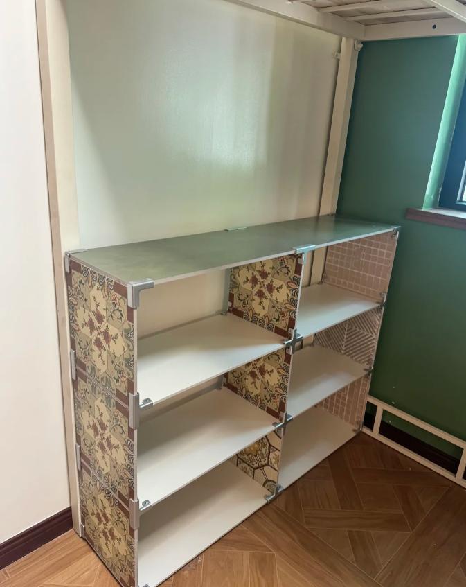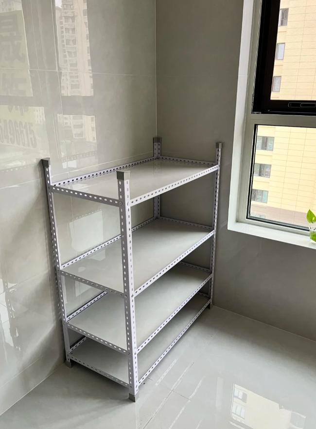 在網上買點“角鋼架”,根據瓷磚的規格(上面這種瓷磚是300㎜×600㎜的),組合安裝起來,一個簡單實用的置物架就搞定了!