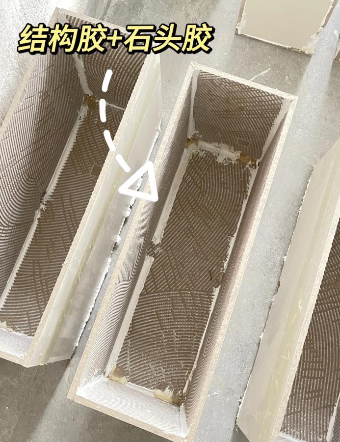 把瓷磚切割成大小合適的尺寸,學學樓主的思路,直接用石頭膠和結構膠,把瓷磚粘起來。