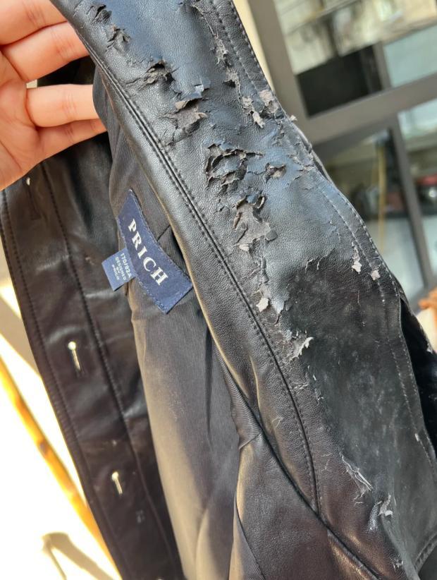 和真皮皮衣相比,這一點真的是太糟心了。且不說真皮更耐穿,真皮破損了也不至於破損成這樣。