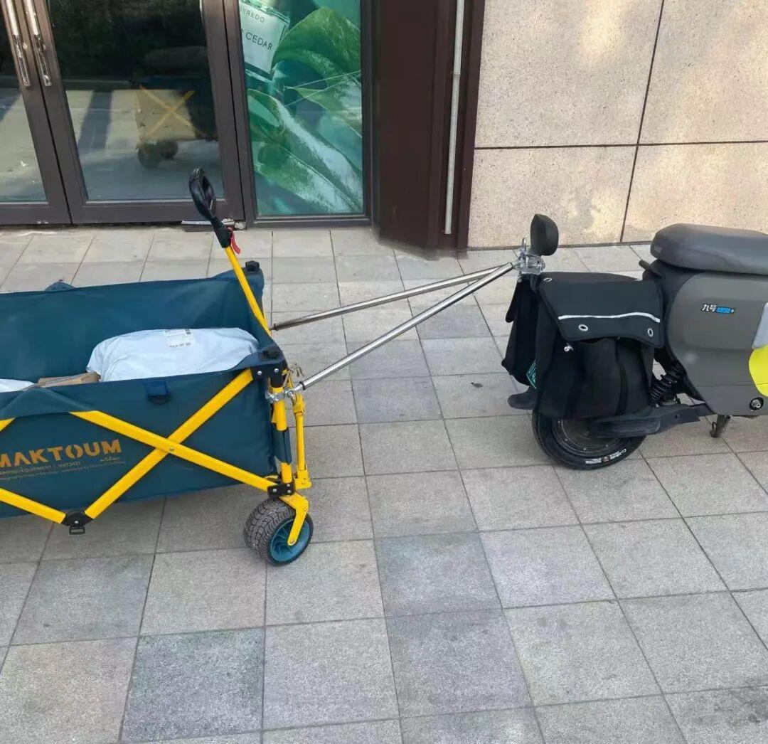 而加了連接杆就不一樣了,一方面它比臨時繩子之類的牢靠,另外它形成三角形穩固結構,確實比較穩當,拖車不會亂晃。