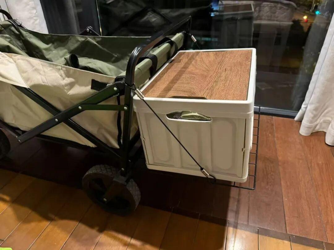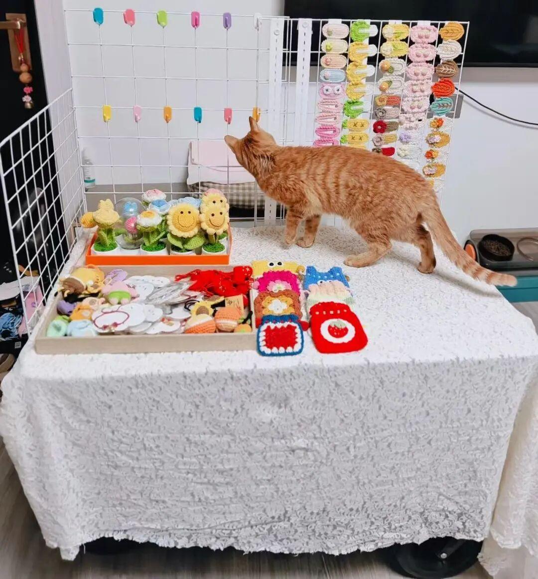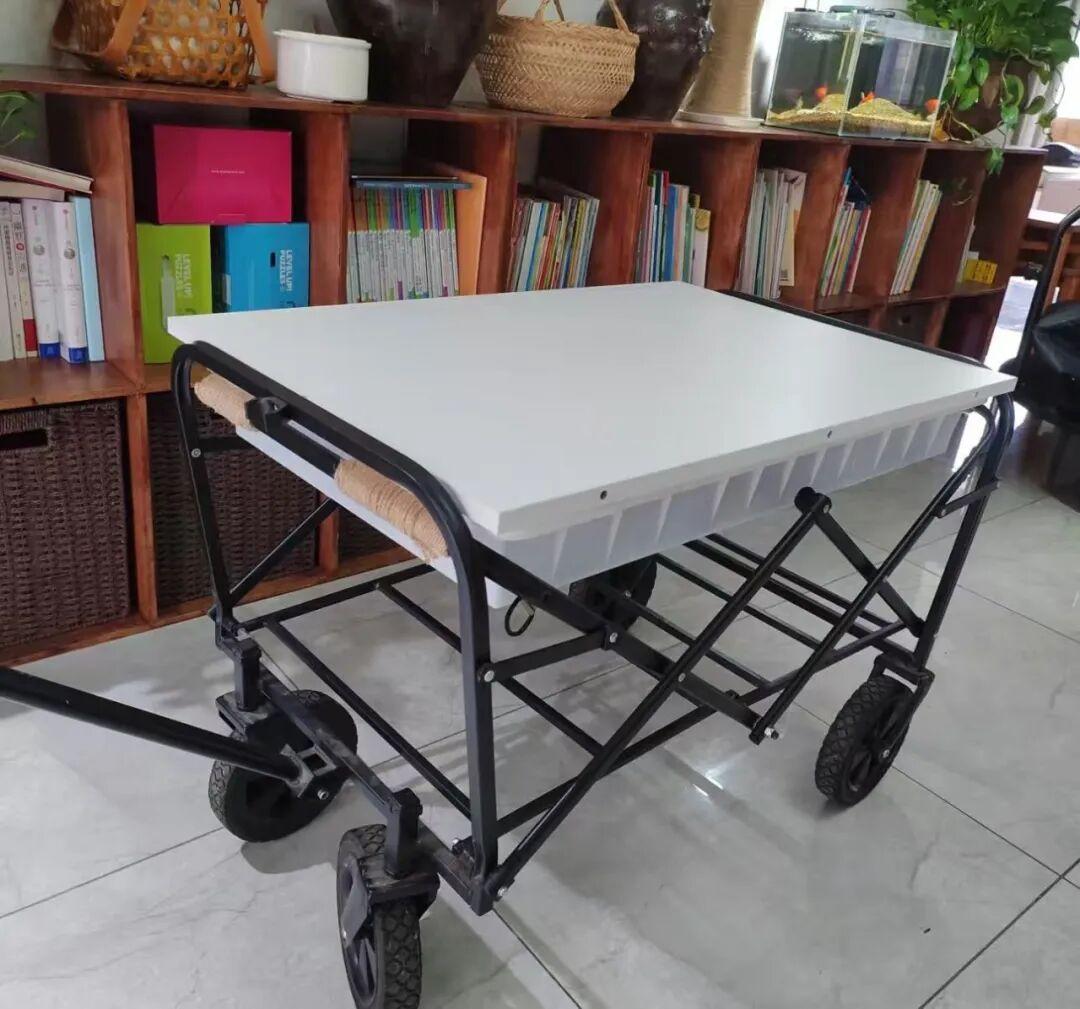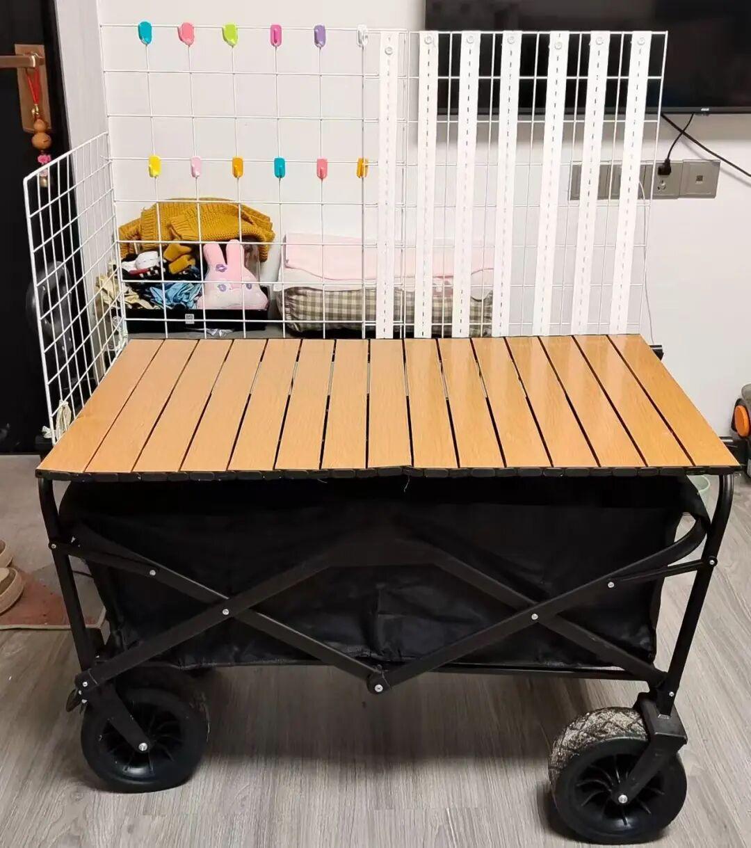 再鋪上一塊閒置的白紗,這樣總花費一百出頭,就改造成了一個擺攤神器。
