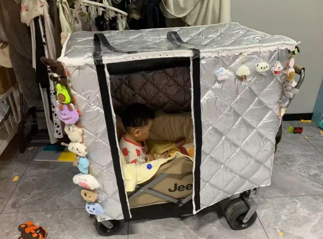 殊不知,一些聰明的網友早就放棄了嬰兒車,直接用露營車替代。