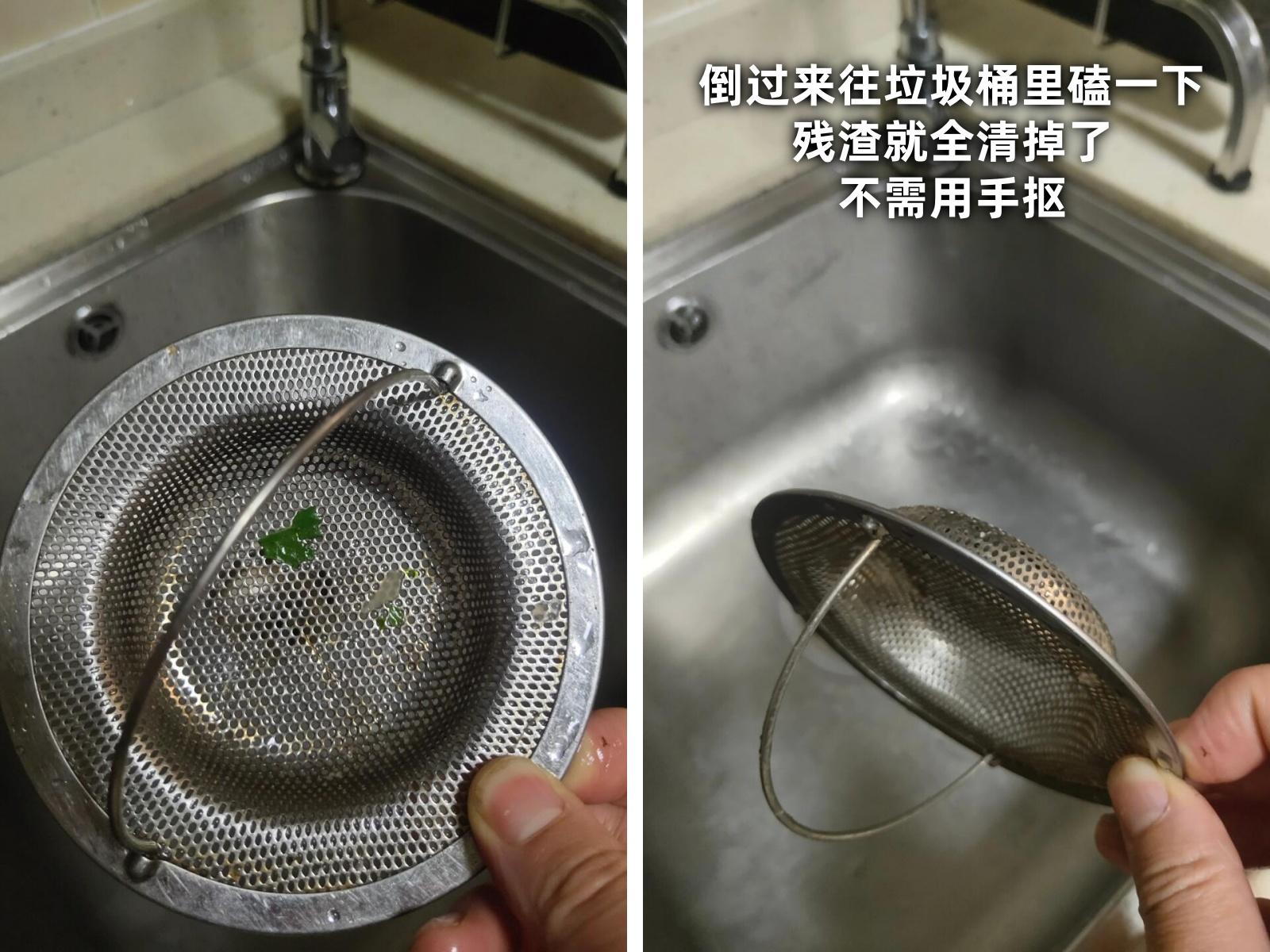 新的這個濾網眼又密又平整,細小殘渣全能兜住,排水還特順暢。最方便的是清理——凹槽淺、表面滑,對着垃圾桶一磕就乾淨,完全不用手摳。才五塊錢,省心又划算。