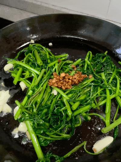 蒜頭酥炒菜也絕,炒空心菜時撒一把,香到盤子都想舔乾淨。