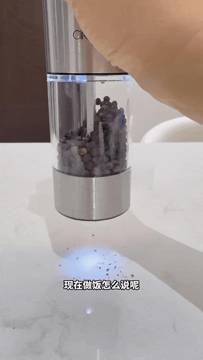 後來入手電動研磨器,方便太多了!按一下立馬出粉,單手操作省時省力,還能調節粗細適配不同菜品。我買了兩個,黑白胡椒分開磨。每個才20塊出頭,充電能用三個月,特別省心。