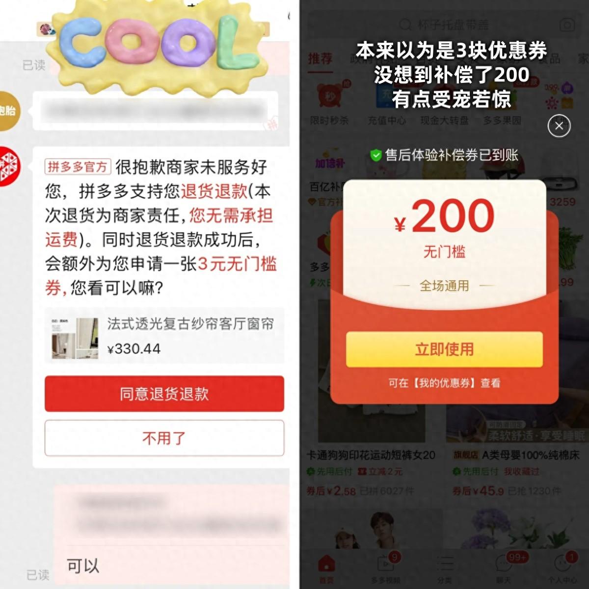 ▲買窗簾有問題賣家推諉,平臺直接幫我接入退貨,還補償優惠