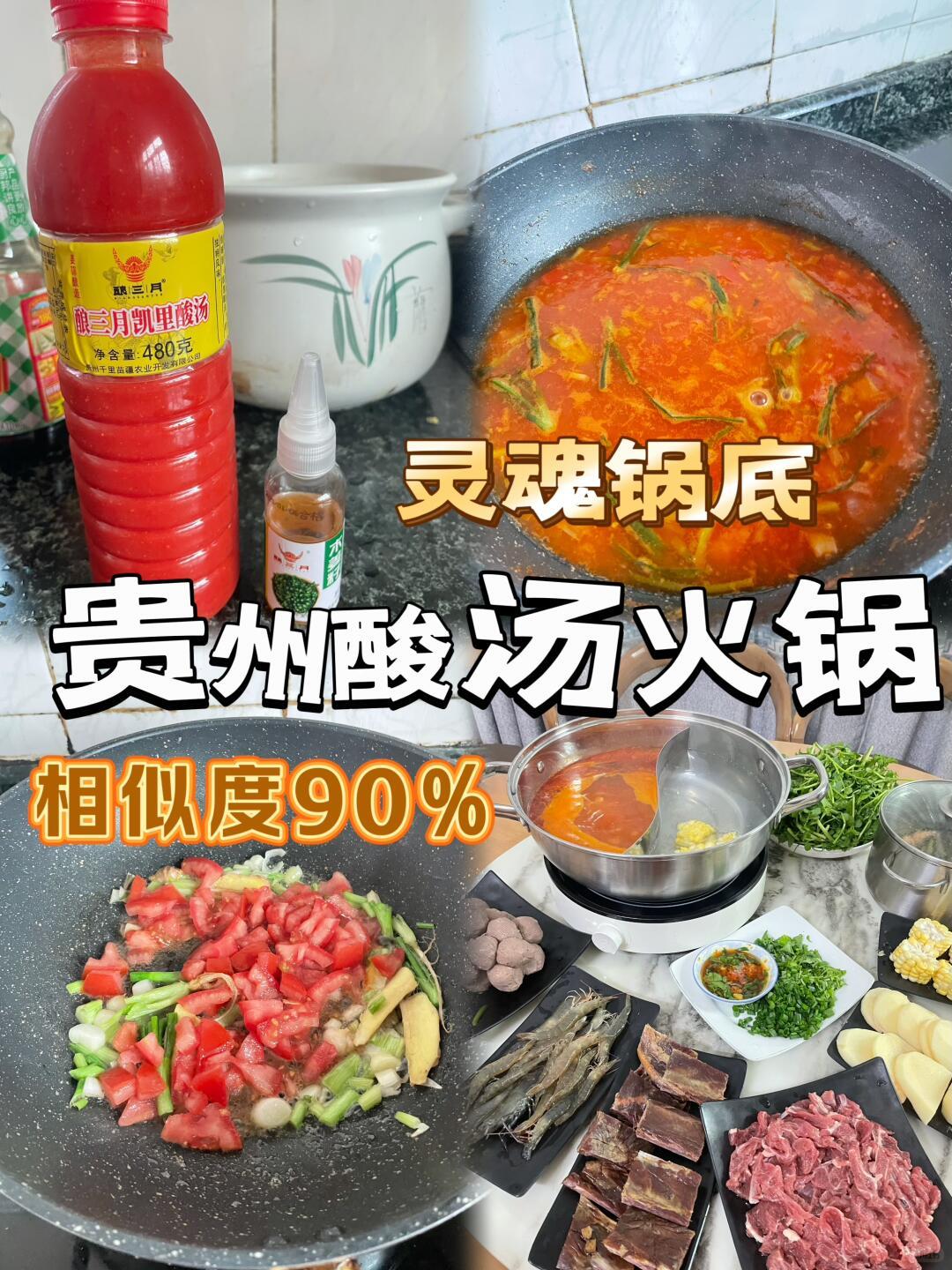 後來在拼夕夕買了一瓶,還請教了當地網友做法:先要“治酸”——鍋裏下油爆香姜蒜、幹辣椒、花椒,再放一兩個番茄炒出汁,然後倒一碗酸湯,配三四碗水燒開,轉小火滾一會兒把酸味煮出來。湯濃了加水,淡了加酸,最後用鹽和味精調好味才能下菜。